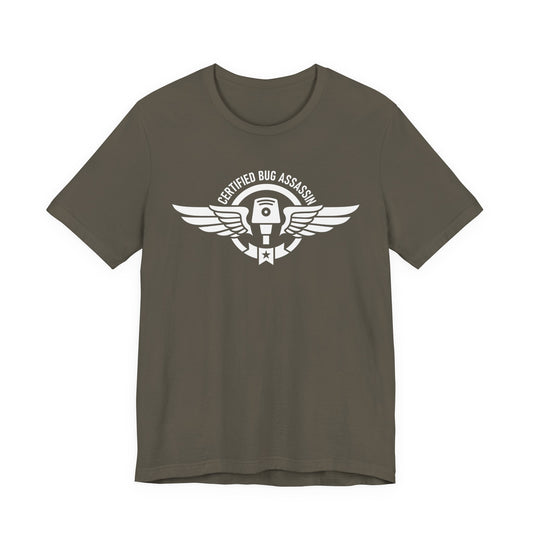 Certified Bug Assassin - Funny Pest Control Military Style Graphic Tee