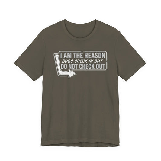 Bugs Check In But Don't Check Out - Funny Exterminator Graphic Tee