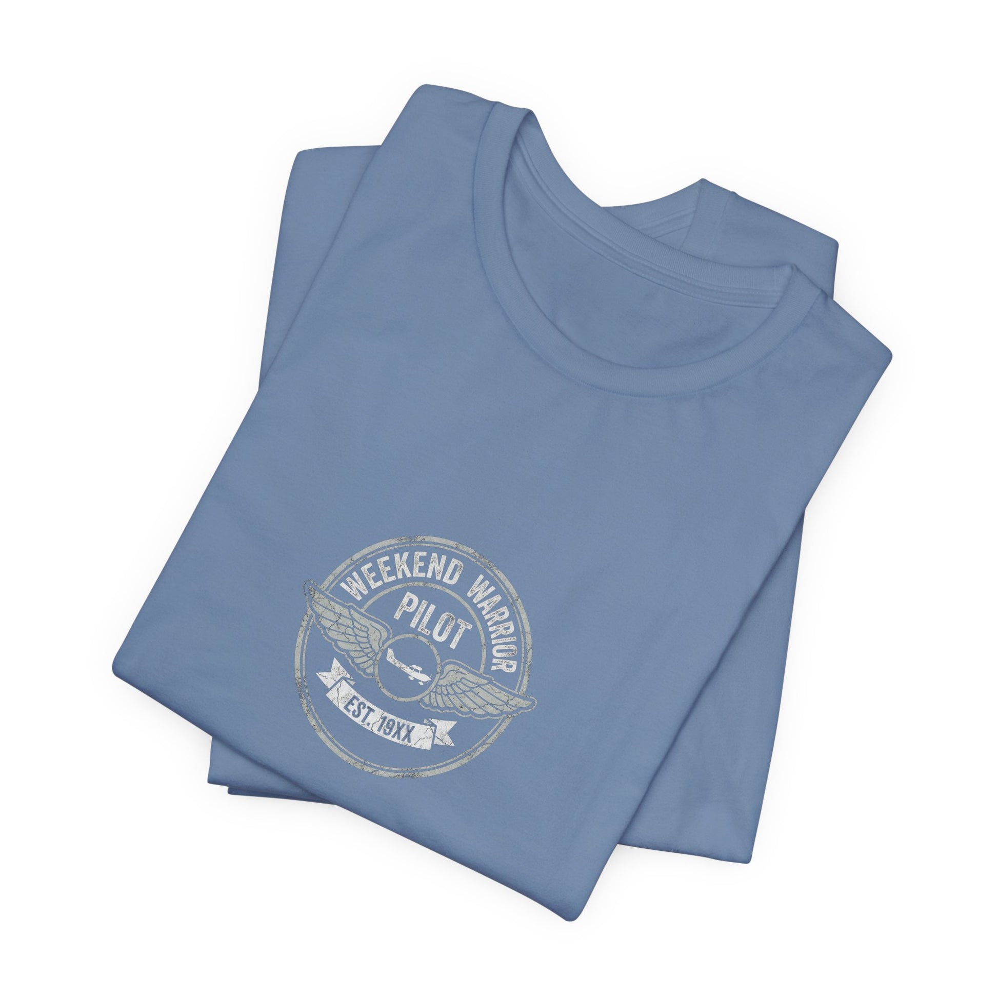 Weekdays you work, weekends you fly. This Weekend Warrior pilot tee is for general aviation lovers who live for Saturday morning preflight. Comfortable Bella+Canvas 3001 unisex fit for the hangar and beyond.